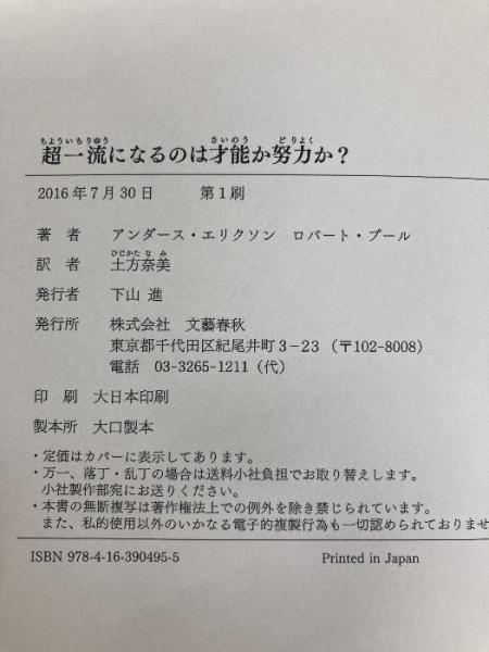 超一流になるのは才能か努力か? 文藝春秋 アンダース・エリクソン