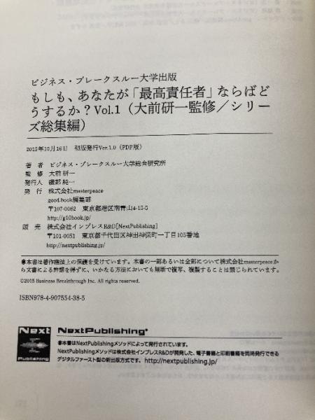もしも、あなたが「最高責任者」ならばどうするか?Vol.1(大前研一監修/シリーズ総集編) (ビジネス・ブレークスルー大学出版(NextPublishing)) good.book ビジネス・ブレークスルー大学総合研究所