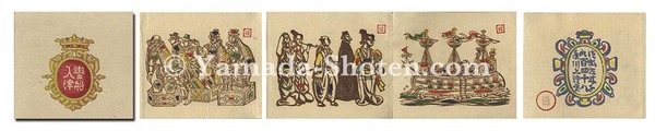 • 解説 木版 手彩13.5×14.7cm(作品サイズ)1冊良好 木版3図 手彩 私刊 限定不明 折本仕立