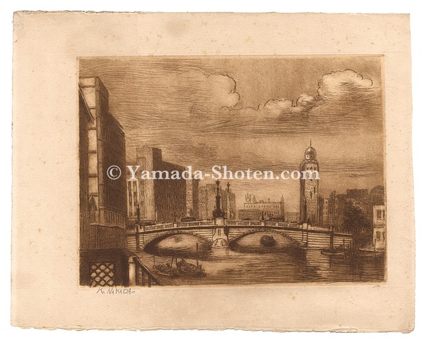 • 解説 銅版23.5×32cm1枚マージンシミ・左上角極少折レ 右手の細い建物は、旧帝国製麻本社ビル(通称:赤煉瓦ビル)