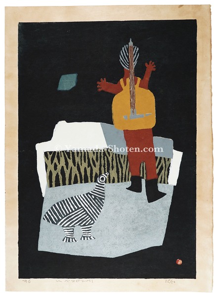 • 解説 木版 58.5x40.5cm(イメージサイズ)ed.501枚ヤケ マージン少汚レ 裏面テープ跡 自摺作品 畦地梅太郎全版画集(町田市立国際版画美術館)No.228