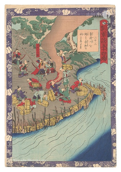 瓢軍談五十四場 二十三 香辺川を絶て赤松を水にしたす Fifty-four Scenes from the Story of Hideyoshi / No. 23: Drawing Water from the Kobe River to Flood Akamatsu