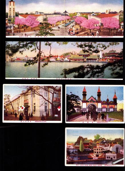 • 著者 〈東京自治館、満蒙館・朝鮮館、台湾館・外国館、化学工業館、平和館・製作工業館、萬国館、台湾館・英国館・外国館、樺太館、南洋館、演芸館、第一会場正門、第二会場ノ一部、平和塔及水上飛行機、飛行機ヨリ見タル第二会場全景、北海道館・樺太館・満蒙館・龍宮館・朝鮮館・水晶塔〉