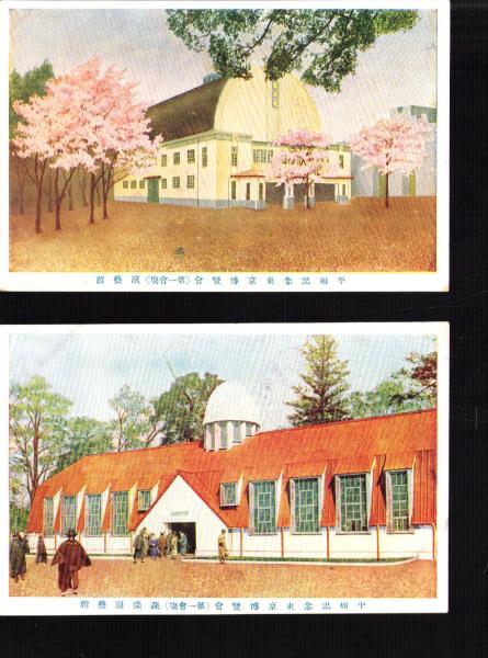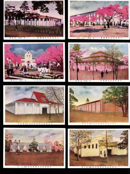 • 著者 〈正門、蔬菜園芸舘、演芸舘、衛生舘、蚕糸舘、美術舘、平和舘、建築舘、農産舘、化学工業舘〉