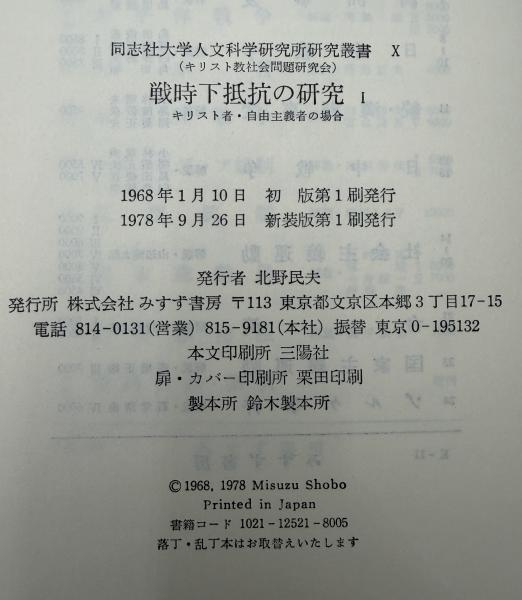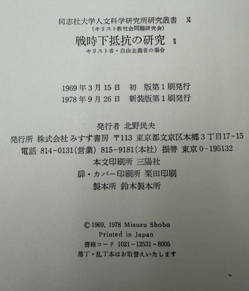 戦時下抵抗の研究 Ⅰ・Ⅱ 2冊揃い 新装版