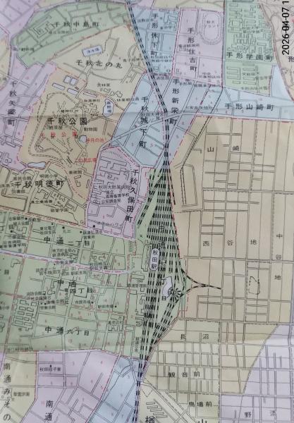 秋田市街図 1:13,000 精密地番入 秋田市観光案内付き