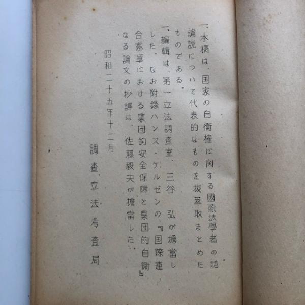 自衛権に関する国際法学者の諸説(国立国会図書館・昭和26年1月)詳細は目次画像参照