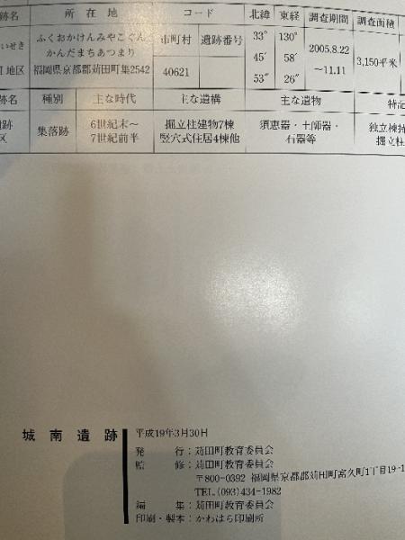 城南遺跡 調査報告 2007年