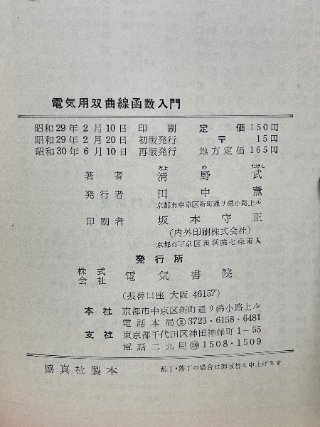 電気用双曲線函数入門