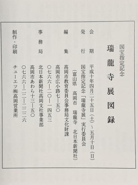 図録 国宝指定記念 瑞龍寺展 1998年 国宝指定記念「瑞龍寺展」実行委員会