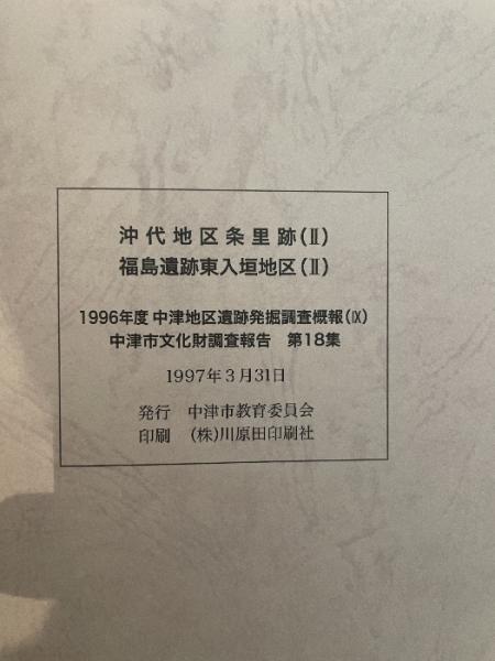 沖代地区条里跡(I) 福島遺跡東入垣地区(Ⅱ) 1996年度 中津地区遺跡群発掘調査概報(IX) 中津市文化財調査報告 第18集 1997 中津市教育委員会