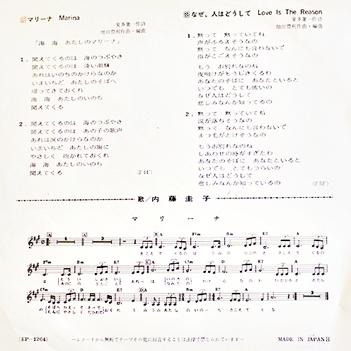 マリーナ/なぜ、人はどうして 内藤圭子(内藤洋子の実妹)・歌 東芝音楽工業(株) 1970年