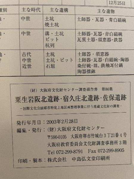 粟生岩阪北遺跡 宿久庄北遺跡 佐保遺跡 -国際文化公園都市特定土地区画整理事業に伴う埋蔵文化財の調查-