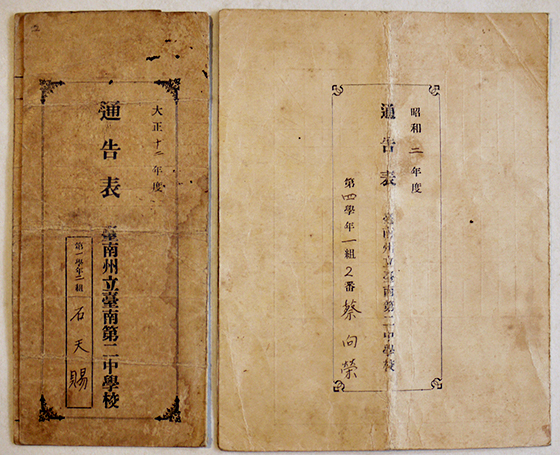 臺南州立臺南第二中学校成績通告書(5通) 台湾教育資料 大正12年〜昭和13年