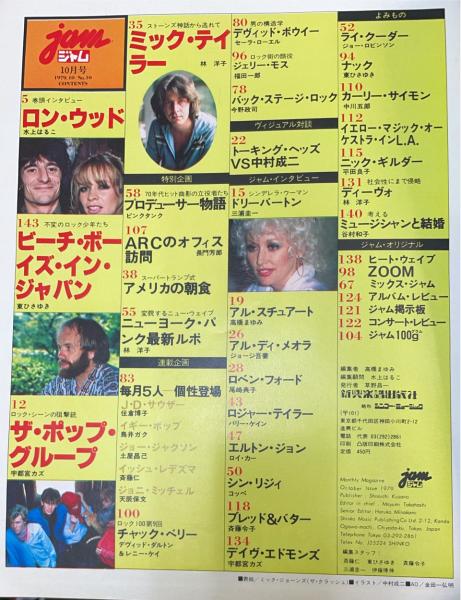 ジャム JAM ロン・ウッド ミック・テイラー ライ・クーダー 他<シティ・ライフとロックが出会う音楽雑誌> (第一巻10号通巻10号)