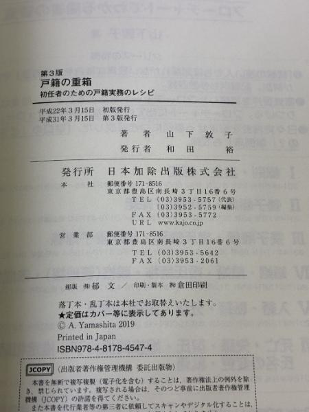 第3版 戸籍の重箱―初任者のための戸籍実務のレシピ― 日本加除出版 山下 敦子