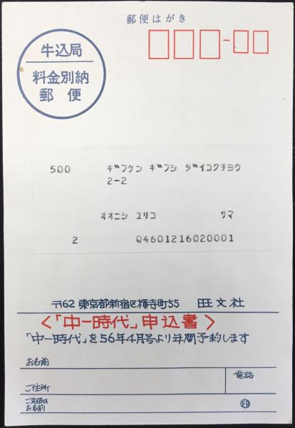 〈絵葉書〉旺文社 中一時代『スグ、その場でもらえる大人気のヤングミニ』