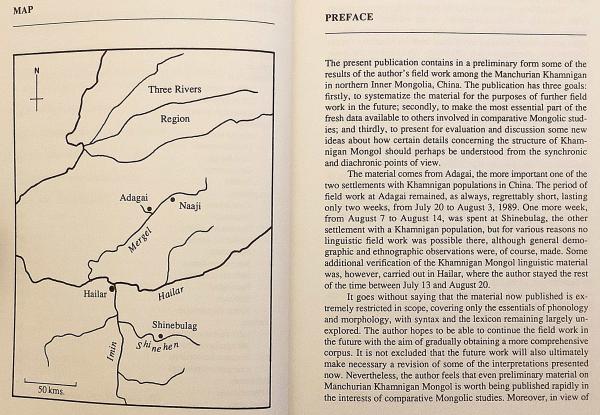 ●"Results of the author's field work among the Manchurian Khamnigan in northern Inner Mongolia, China" (中国内モンゴル北部のハムニガン人を対象に行われた著者のフィールドワーク成果を収録) --Pref