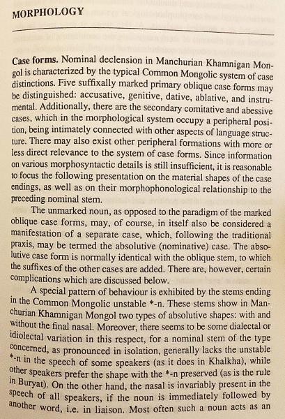 ハムニガン・モンゴル語は話者数の少ない周辺的モンゴル語の一変種でありながら、古層的特徴やツングース系言語との接触を色濃く残す点で、比較モンゴル語研究において重要な位置を占める。