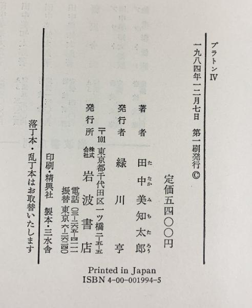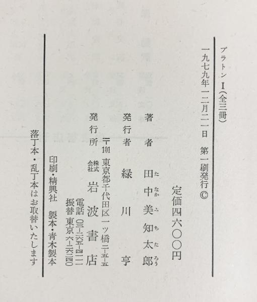 プラトン(1~4/全4冊セット)岩波書店 著:田中美知太郎 1979年~