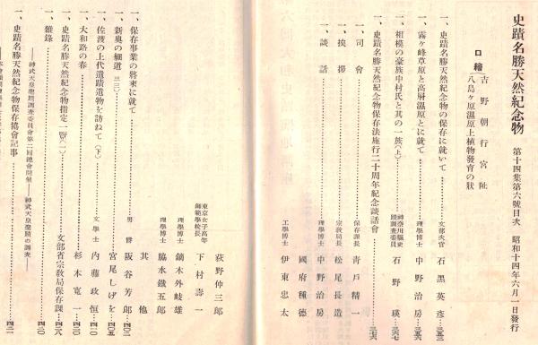 ※史蹟名勝天然紀念物第14集第6號 相模の豪族中村氏と其の一族(上)=石野瑛・霧ケ峰草原と構想湿原とに就いて=中野治房 ほか