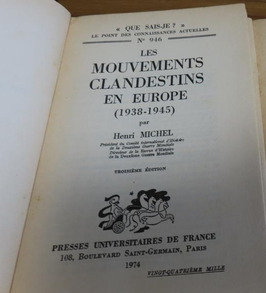 【Que sais₋je?】 ヨーロッパにおける地下組織 (1938-1945)  アンリ・ミシェル : Les Mouvements Clandestins en Europe Troisième Édetion 〔フランス語〕