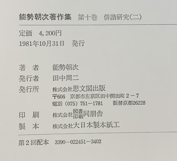 能勢朝次著作集 (第10巻) 俳諧研究 2 思文閣出版 能勢朝次