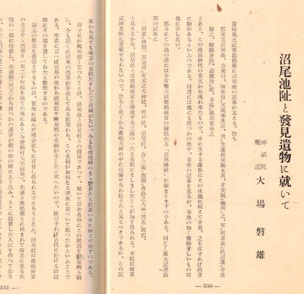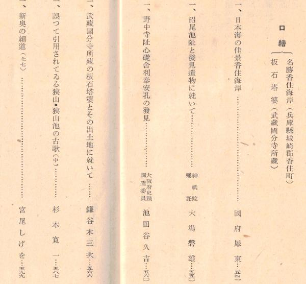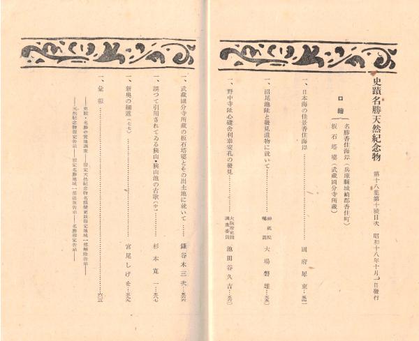※史蹟名勝天然紀念物第18集第10號 沼尾池阯と発見遺物に就いて=大磐雄・野中寺阯心礎斜里奉安孔の発見=池田久吉 ほか