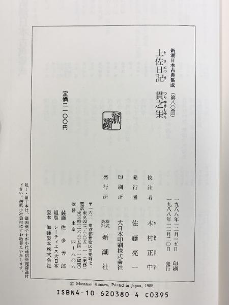 土佐日記 貫之集 新潮日本古典集成 校注:木村正中 新潮社1988年