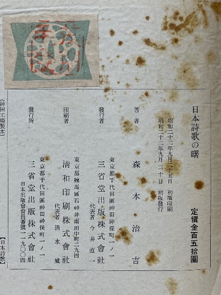 • 解説 見返しに古書札 初版 裸本 ヤケシミ