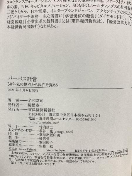 パーパス経営: 30年先の視点から現在を捉える 東洋経済新報社 名和 高司