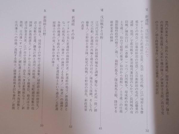 • 解説 ●送料は厚紙ケースに入れて、「クリックポスト」なら185円です。●伝説に依拠してではなく、史料に基づいて、新選組・新微組の誕生から終焉、さらにその後の足取りまでをたどった。図版多数収載。●コンディション:並。 表紙に微スレ。本文印刷面は天地小口周辺に薄っすらヤケあり。それら以外はおおむね良好です。