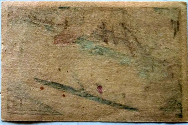 一枚摺物 彩色木版画 広重京都名所之内 あらし山満花(桜の嵐山と桂川の舟) 貴重品 題名英文併記 ハガキサイズ 昭和年代〇和本