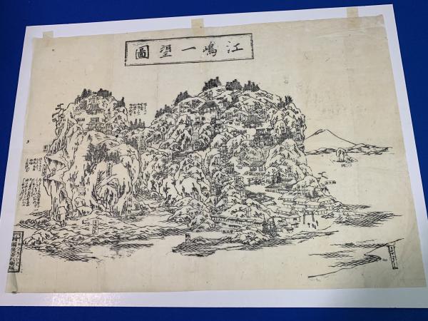 ①  江嶋一望図(江ノ嶋一望図)、絵図屋喜兵衛版、木版摺り、1枚、33.0×46.5cm