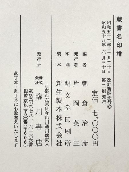 蔵書目名印譜 昭和58年 株式会社臨川書店 朝倉治彦