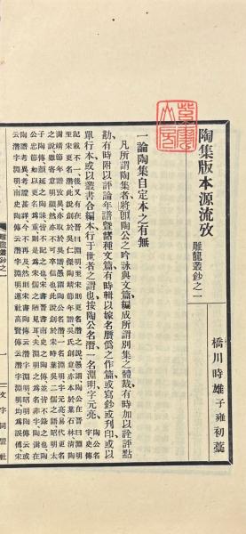 陶集版本源流攷 雕龍叢鈔之一