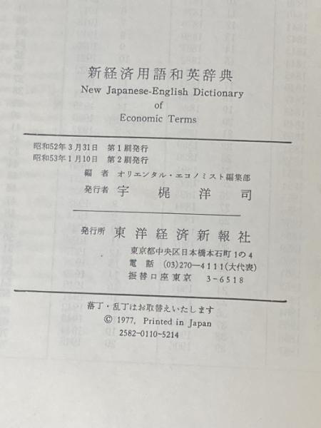 ※箱無し 新経済用語和英辞典 (1977年) 東洋経済新報社 東洋経済新報社オリエンタル・エコノミスト編集部