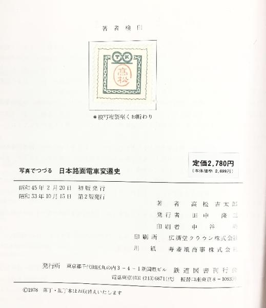 写真でつづる[日本路面電車変遷史]高松吉太郎:著 鉄道図書刊行会 昭和53年