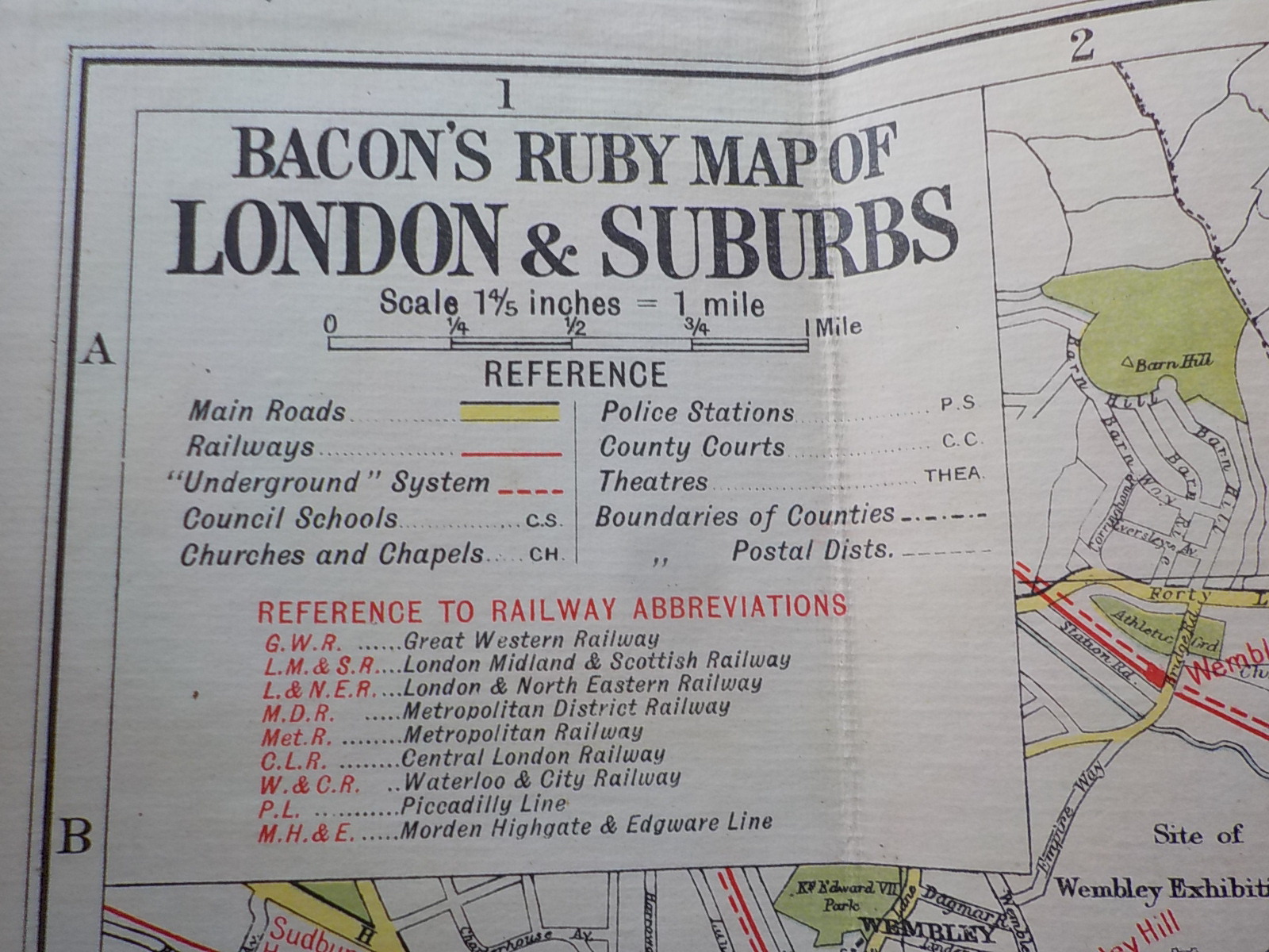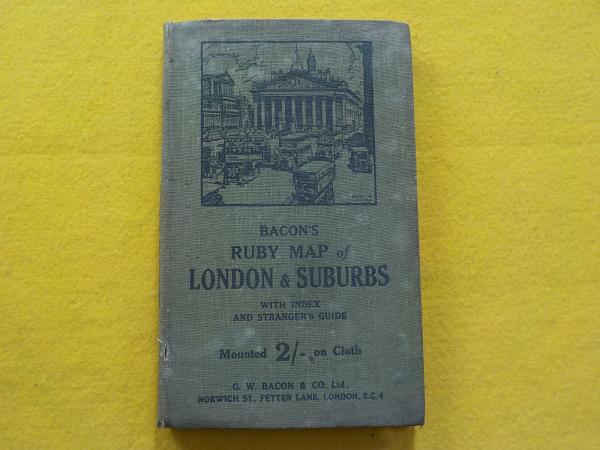 BACON'S RUBY MAP of LONDON & SUBURBS WITH INDEX AND STRANGER'S GUIDE