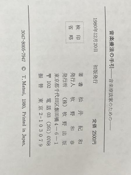 音楽療法の手引―音楽療法家のための (1980年) 牧野出版 松井 紀和