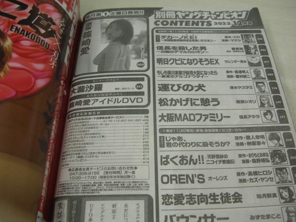 別冊ヤングチャンピオン 2023年12月号 篠崎愛 表紙+巻頭グラビア+未開封DVD付(31分) 大瀧沙羅・巻中グラビア