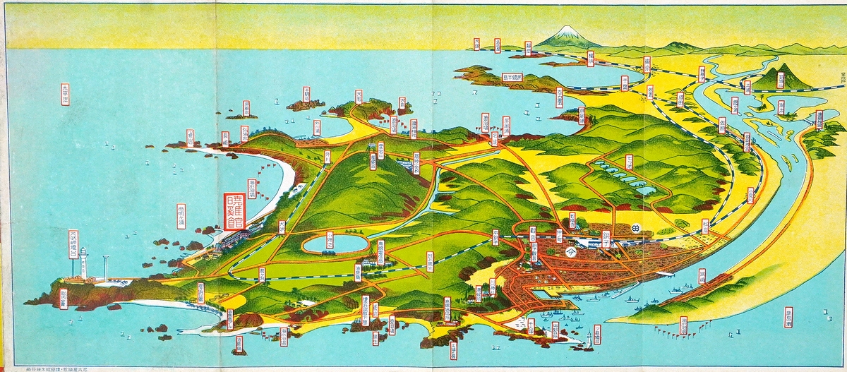 • 解説 両面印刷(鳥瞰図、名所案内、暁鶏館案内)
