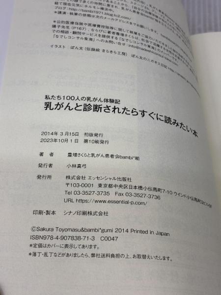 乳がんと診断されたらすぐに読みたい本 ~私たち100人の乳がん体験記 エッセンシャル出版社