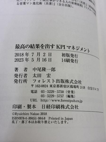 最高の結果を出すKPIマネジメント フォレスト出版 中尾隆一郎