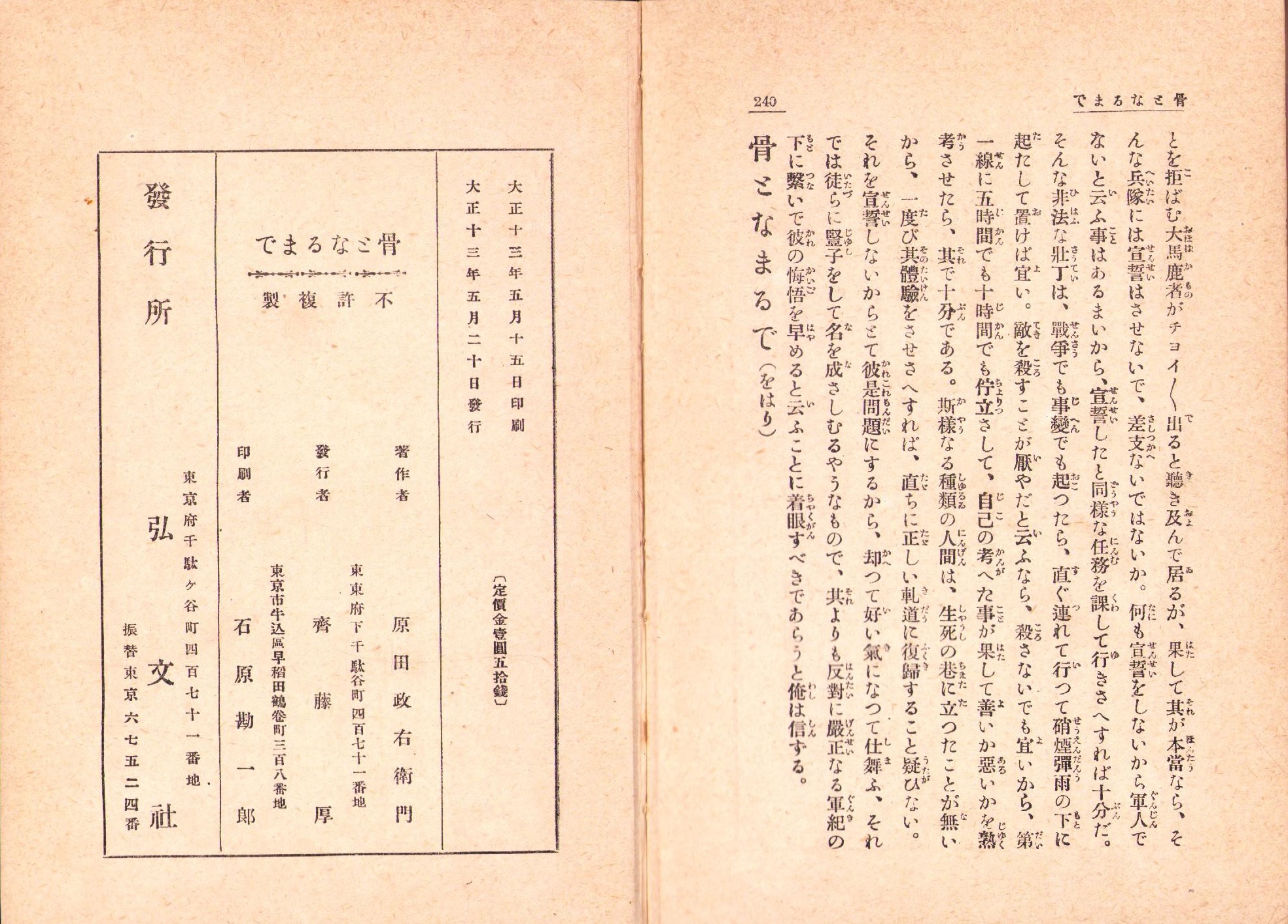 • 解説 240頁、裸本、前部見返しに印と「大正13年5月27日許可」の小紙片貼付