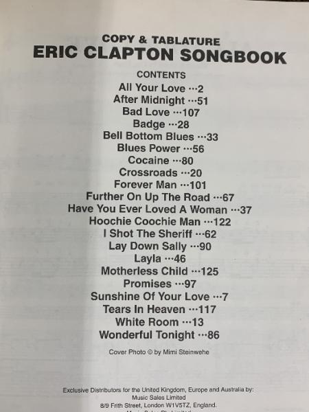 コピー&タブ譜 エリック・クラプトン・ソングブック 輸入元:シンコーミュージック 1999年