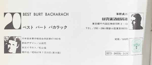 20BEST バート・バカラック シンコーミュージック 昭和47年