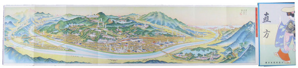 • 著者 18×77 吉田初三郎画 裏面直方市沿革・名所写真 表紙裏面市街略図 福岡県直方市役所