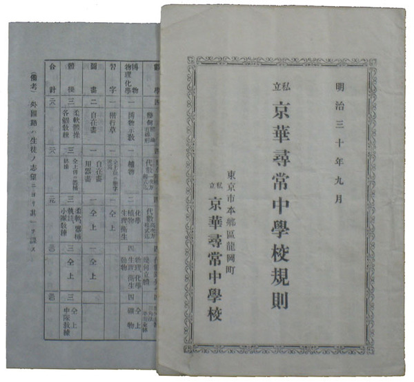 • 著者 19×13 13頁 創立の理・規則・科程度表・教職員他 東京市本郷区龍岡町京華尋常中学校