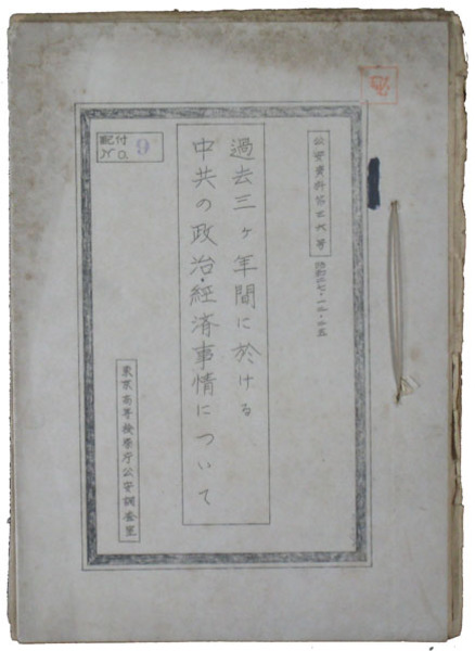 • 著者 孔版308頁 解説篇・資料篇 中国共産党の歴史概観・反革命分子の粛清・思想改造運動他 東京高等検察庁公安調査室 公安資料第36号